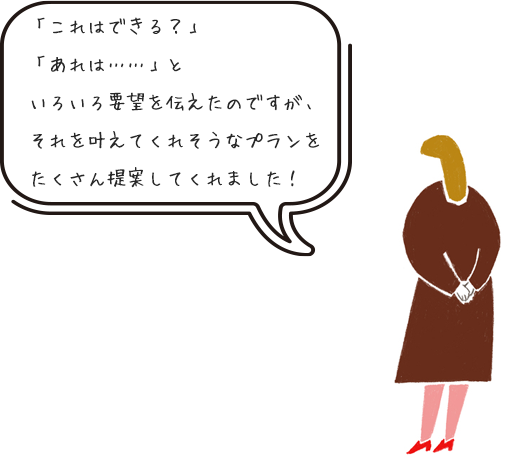 「ここをこうしてみたい」「これはどうなっているの?」といったご質問も、お気軽にお寄せください。